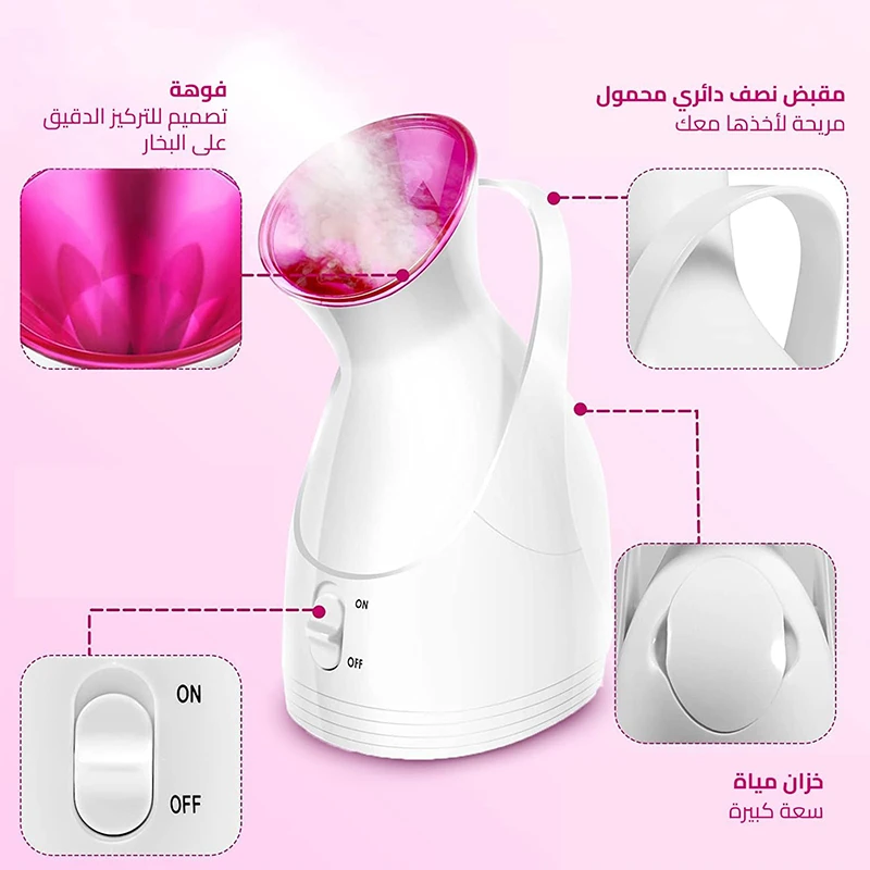 النوع: جهاز بخار للوجه، جهاز بخار للوجه والشعر، جهاز بخار أيوني للوجه، استمتعي بترطيبٍ يُضاهي المنتجعات الصحية، مع فتح المسام وتنظيف عميق