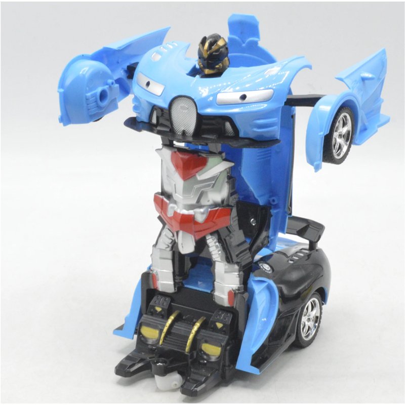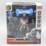 تتحول هذه السيارة المتحولة الزرقاء، التي يتم التحكم بها عن بعد، بسهولة من سيارة أنيقة إلى روبوت، مما يتيح للأطفال الاستمتاع بالقيادة والتحول.