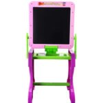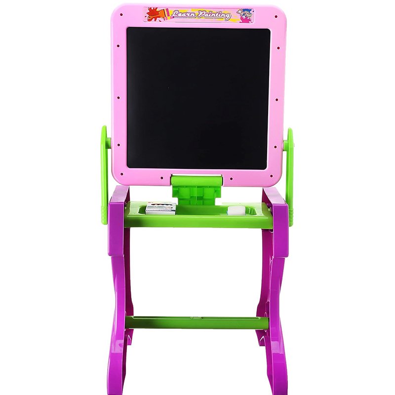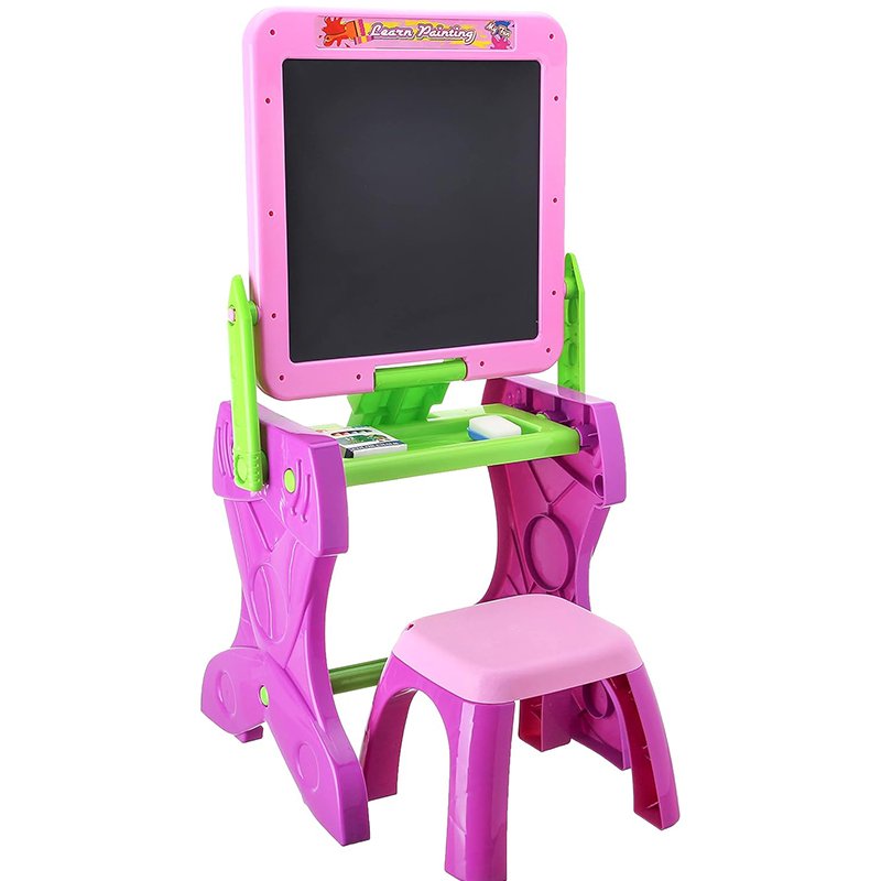 طاولة تعليمية متعددة الاستخدامات تشمل الطباشير، الورق، والممحاة. تعد محطة إبداعية للأطفال للرسم والكتابة والتعبير عن أنفسهم، مما يجعل التعلم ممتعًا.