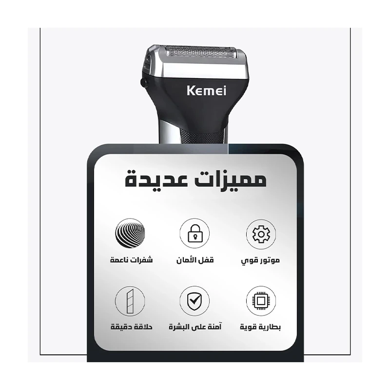 تجربة الأداء الأمثل في الحلاقة مع ماكينة الحلاقة KEMEI، المصممة لتجربة تشذيب خالية من العيوب.