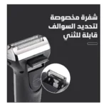 مجهزة برؤوس مزدوجة وقواطع عائمة، مما يضمن الوصول إلى كل منحنى في بشرتك للحصول على حلاقة قريبة ومريحة.