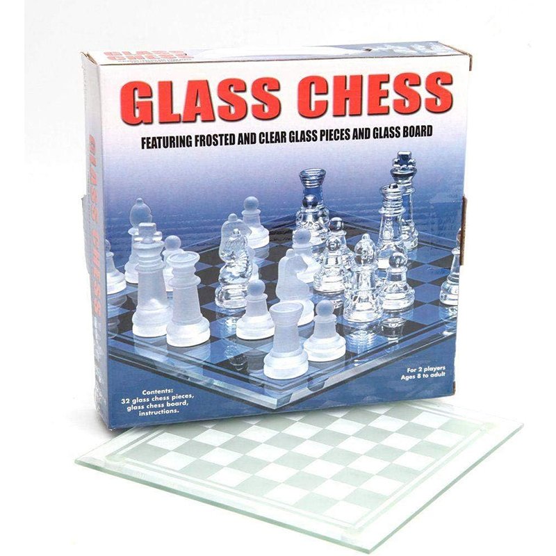 اسم اللعبة: مجموعة شطرنج زجاجية مع لوح زجاجي بحجم كبير