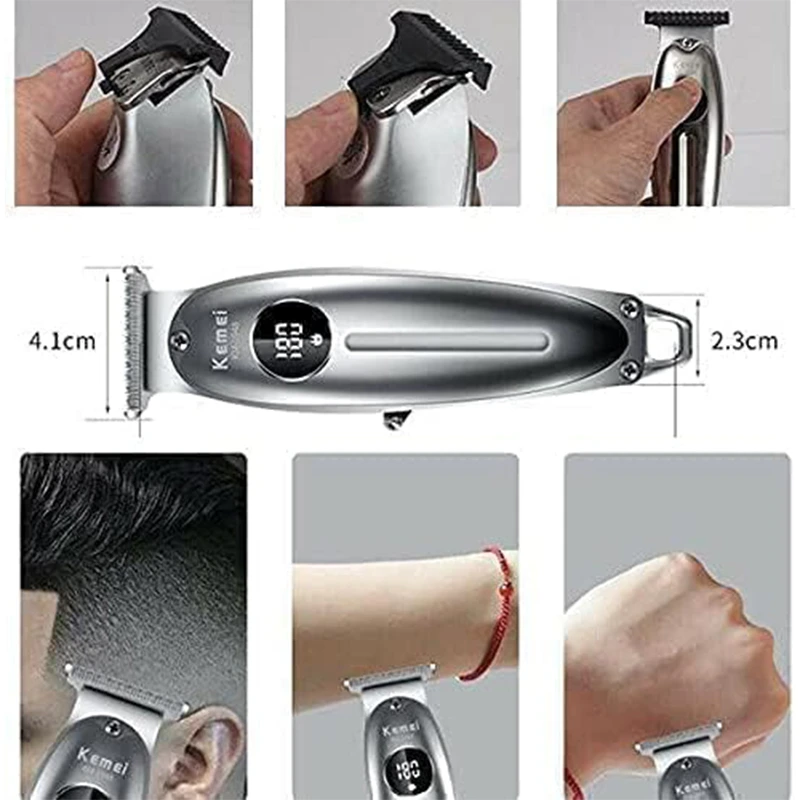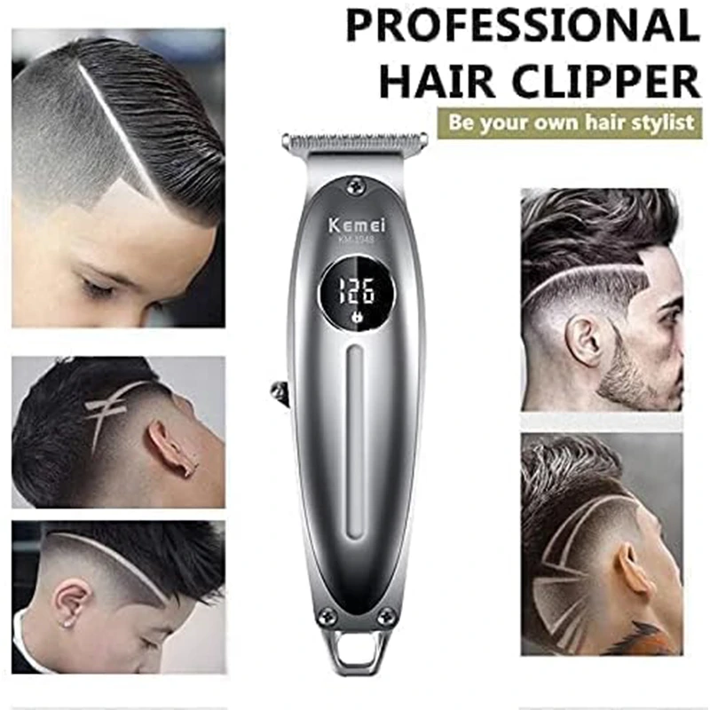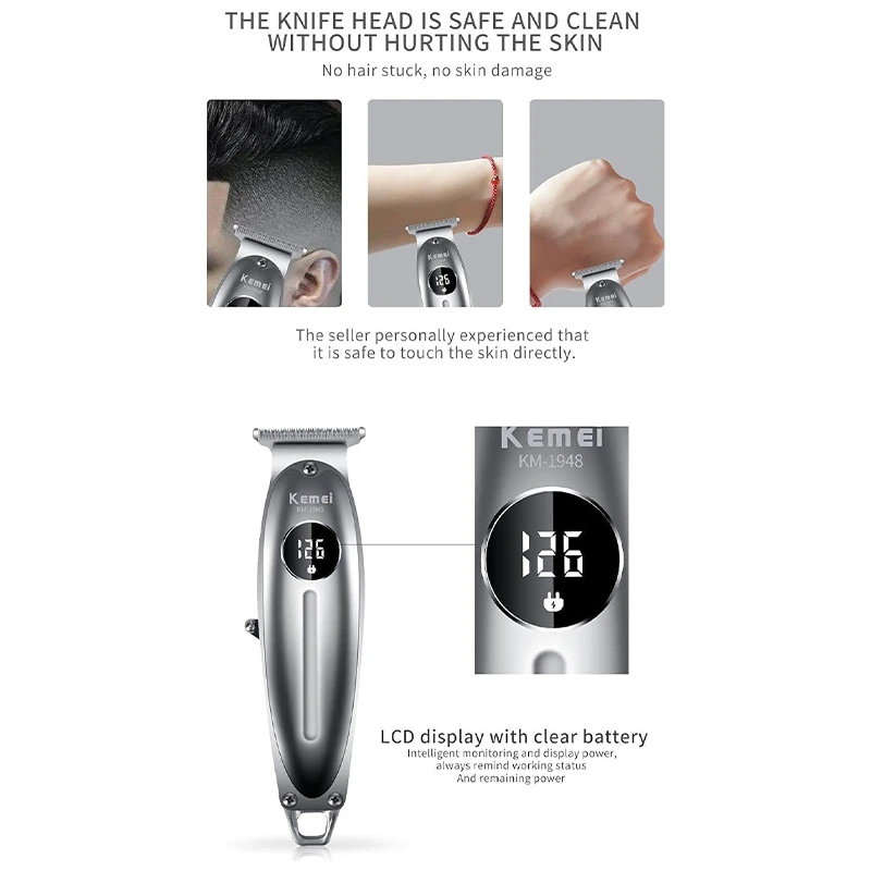 ماكينة حلاقة KM-1948 الاحترافية، شفرة فولاذية مقاومة للصدأ، بطارية ليثيوم وشاحن USB.
