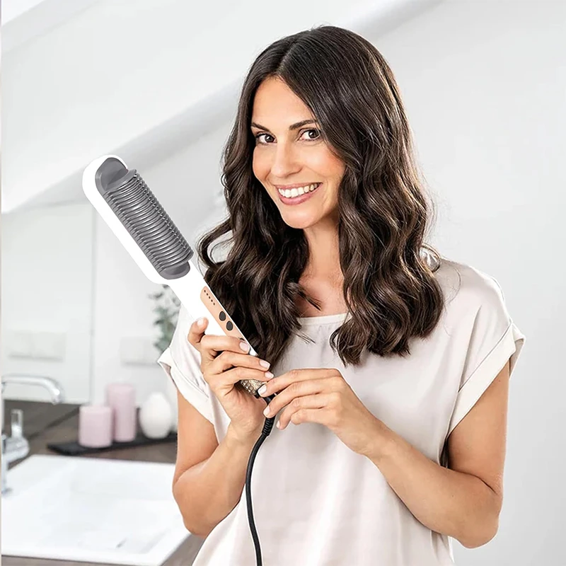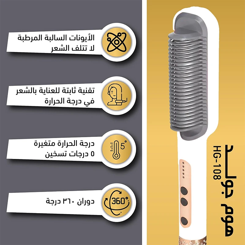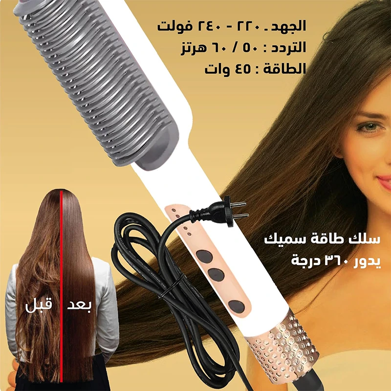 النوع: مكواة فرد شعر كهربائية – لوحة سيراميك، تسخين سريع، عناية بالشعر – مشط فرد شعر احترافي – تصفيف سهل وآمن، 45 واط