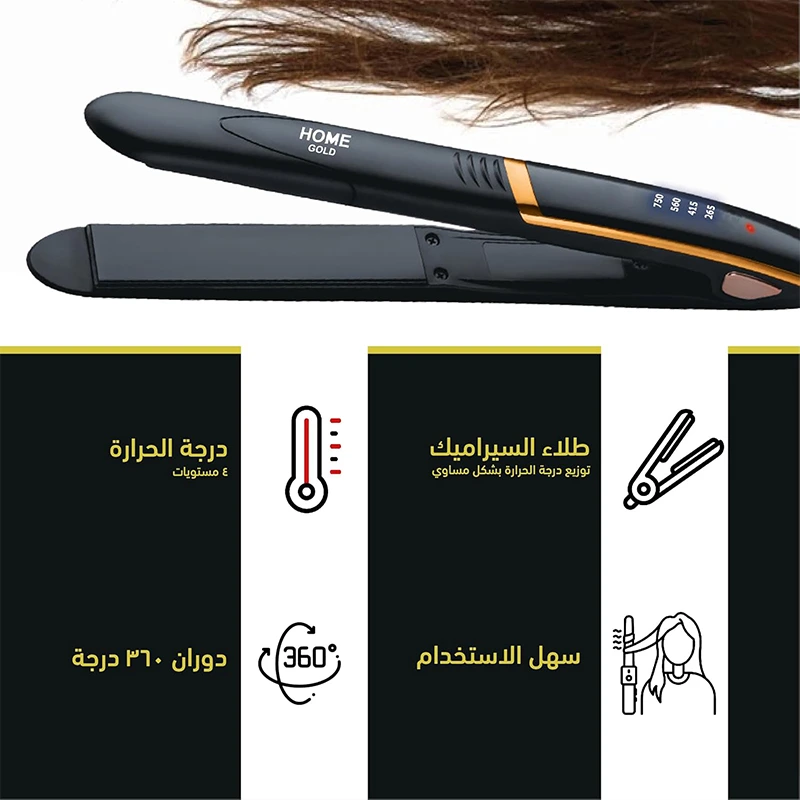 تصميم سهل الاستخدام: صُممت مكواة فرد الشعر هوم جولد لتوفير الراحة وسهولة الاستخدام، مما يجعلها مناسبة للمبتدئين ومحترفي تصفيف الشعر على حد سواء.