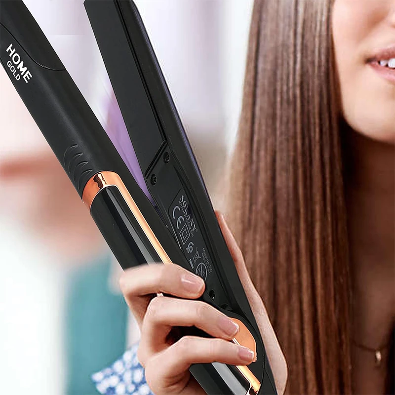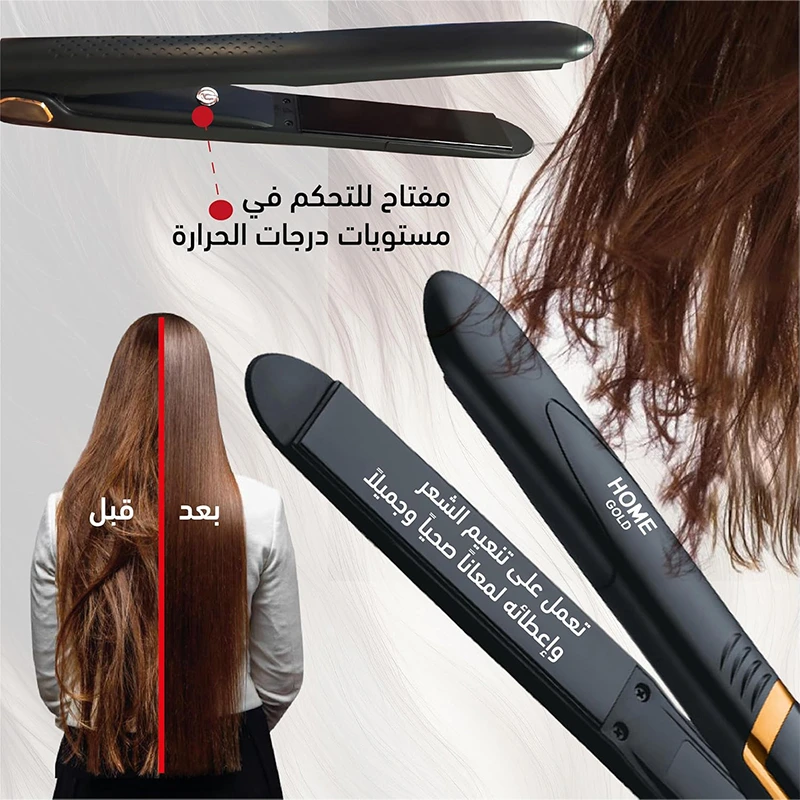 تصفيف متعدد الاستخدامات: احصلي على تسريحات شعر مجعدة ومستقيمة بكل سهولة مع مكواة فرد الشعر هوم جولد، مما يمنحكِ المرونة لتغيير مظهركِ كما يحلو لكِ.