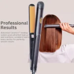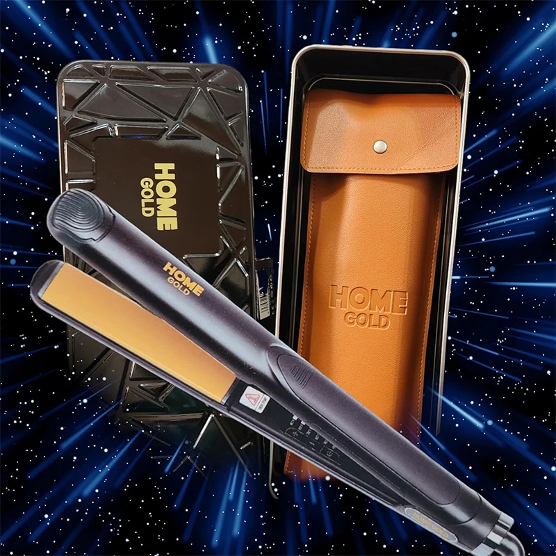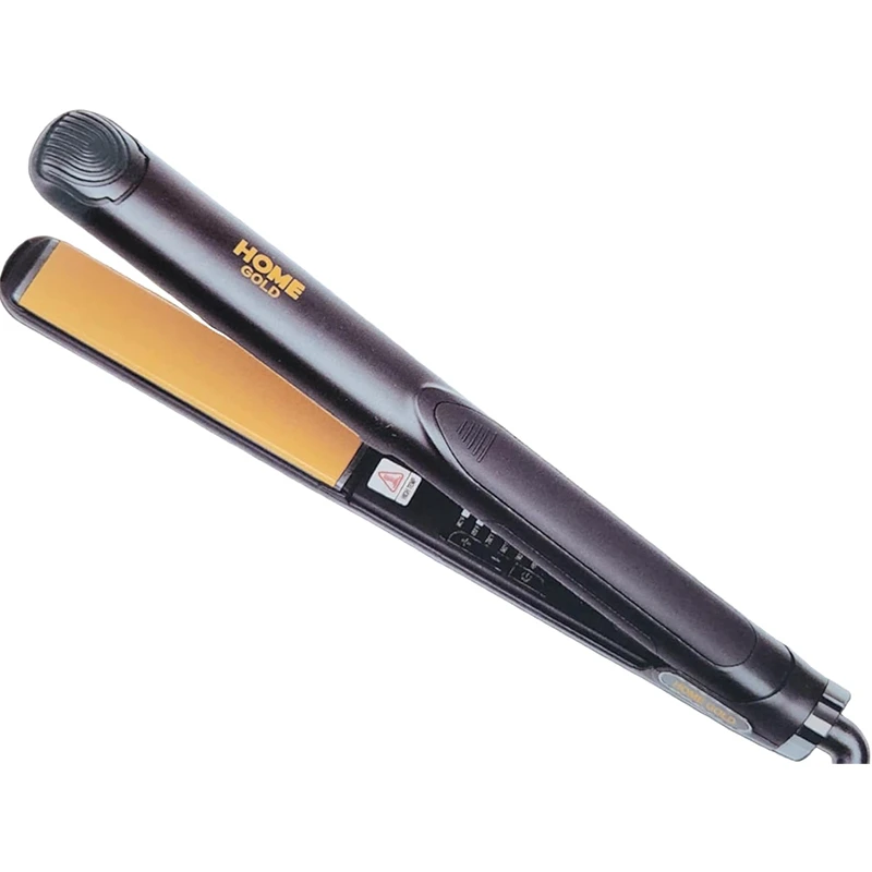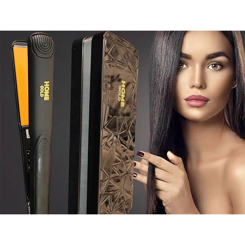 مكواة شعر احترافية من هوم جولد بتصميم كوري، علبة معدنية، ألواح مطلية بالسيراميك تحمي الشعر من الحرارة الزائدة، توزيع جيد للحرارة، درجات حرارة مناسبة لجميع أنواع الشعر، أكثر من ١٠ خيارات لدرجة الحرارة، قوة ٥٠ واط
