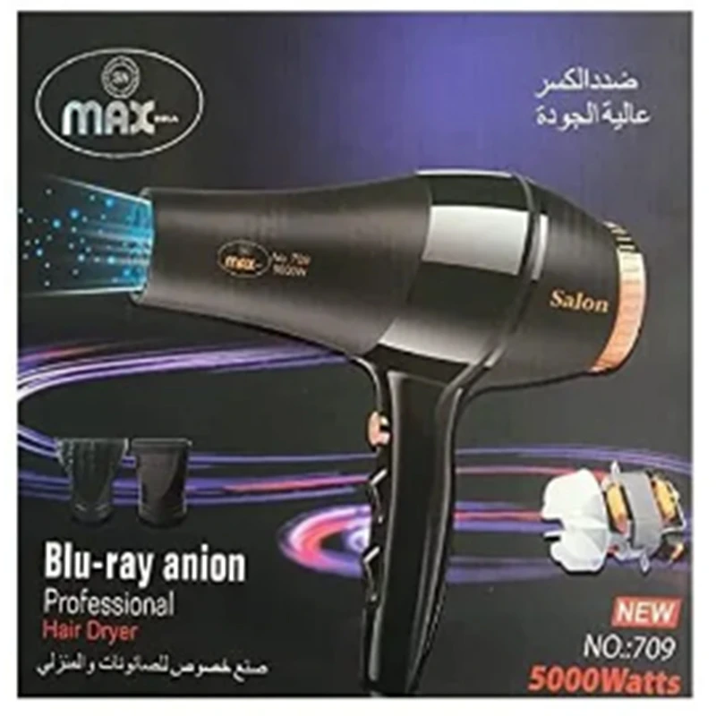 هل تتأخر دائمًا في الخروج من المنزل بسبب شعرك المبلل؟ إذاً، يعتبر مجفف الشعر الاحترافي Max 5000W هو الحل المثالي. يتميز بقدرة 5000 واط وتقنية الأيونات بتقنية Blu-ray، مما يساعد على تجفيف الشعر بكفاءة وسرعة. فقط قم بتوصيل السلك بالمقبس، واضغط على الزر، ووجهه كما تشاء لتجفيف شعرك المبلل بسرعة وبدون جهد كبير.