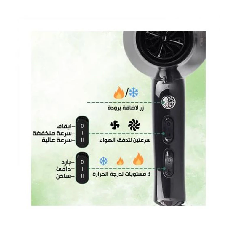 إعدادات متعددة للحرارة والسرعة: تتيح مرونة تناسب جميع أنواع الشعر وتسريحات مختلفة.