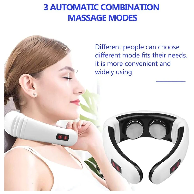 جهاز تدليك نبضي كهرومغناطيسي: 6 أوضاع: يعتمد جهاز تدليك الرقبة على تدليك نبضي كهربائي يحاكي مجموعة متنوعة من تقنيات التدليك في الطب الصيني التقليدي. وضع تدليك مريح، وضع الحجامة، وضع الكشط، وضع الضرب بالمطرقة، وضع الوخز بالإبر. يمكنك اختيار الوضع الأنسب لاحتياجاتك.