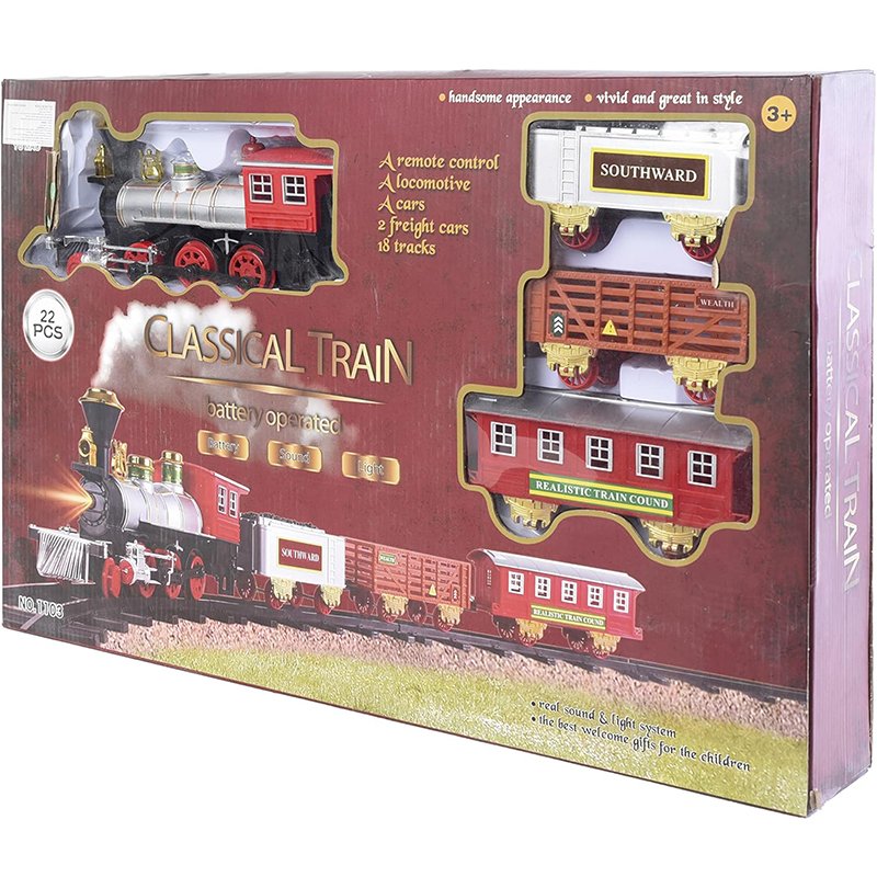 A classic, multi-colored train set with 22 pieces that brings the excitement of the railway to playtime. Ideal for boys who enjoy building and interactive play.
