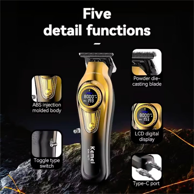 The Kemei KM-1677 offers high-speed precision in every trim. Powered by an 8000 RPM motor and sharp ceramic blades, it ensures smooth, fast, and professional results — perfect for home or salon use.